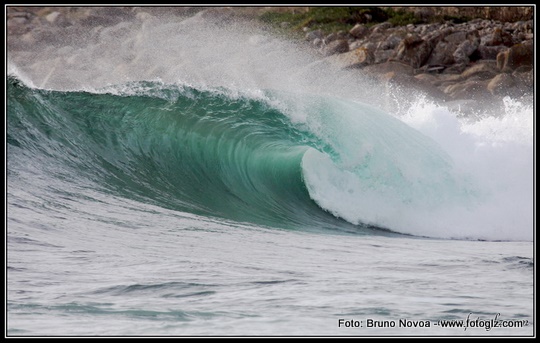 Velaquí tedes as fotos de Bruno Novoa deste brutal spot que parece unha onda sinxela dende fora da auga pero que canto máis preto estás do pico máis pensas en colle-lo codo. O grosor do beizo que aparece nas tres primeiras fotos é colosal. Esta onda rompe sobre unha laxe de granito a ras da auga e ten unha segunda sección bastante agresiva. Grazas a Bruno polas fotos!