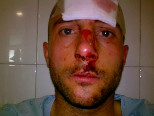 Fran Aguilar, un dos riders de New Wave sufrio un accidente na Toxica, unha das ondas mais potentes da zona de Coruña. Isto paso onte pola mañá mentres gozaban dun baño aparentemente sinxelo con ondas pequenas e moi pouco fondo. O resultado do piñazo foron 20 puntos na fronte, un no beizo e o tabique roto.