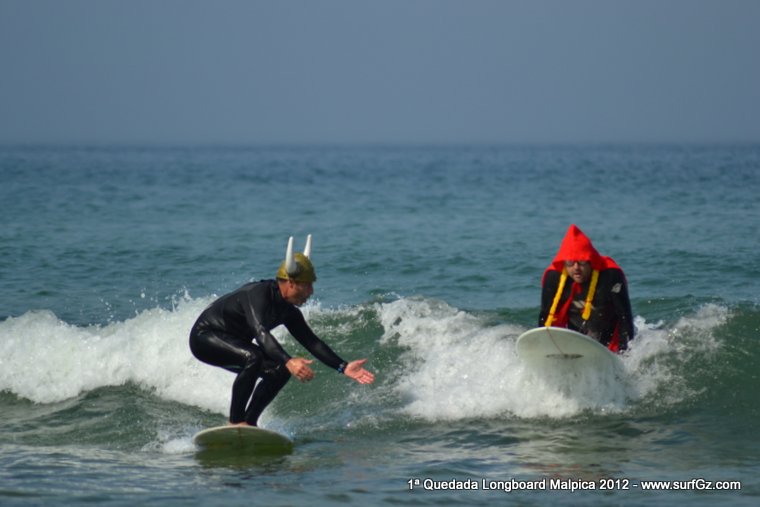 Éxito de participantes galegos e asturianus na primeira Quedada Longboard Malpica que reuniu na praia de Canido, na vila mariñeira de Malpica de Bergantiños, a un bo feixe de surfeiros disfrazados de vikingos, paiasos, algunha meiga e ata un home de negocios con traxe e todo. Foi un día de festa e de irmandade entre as comunidades de long de Galiza e Asturies.