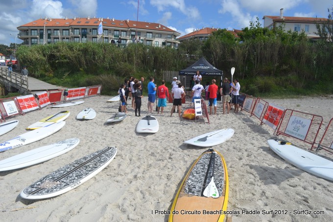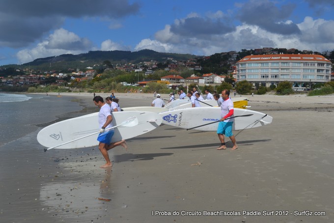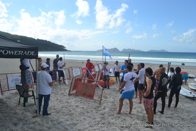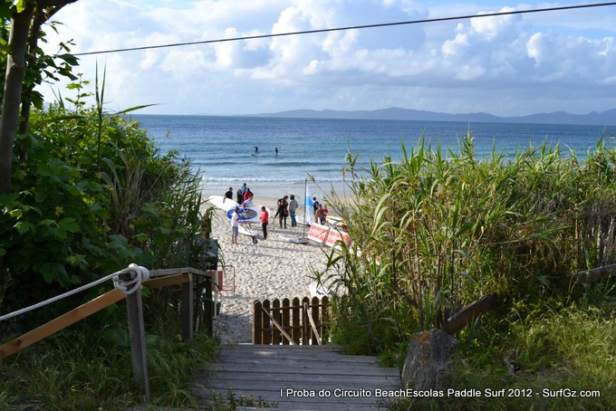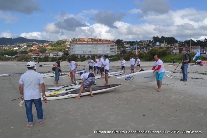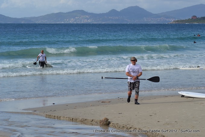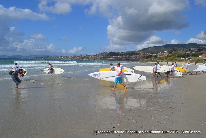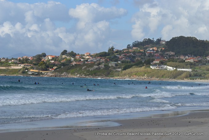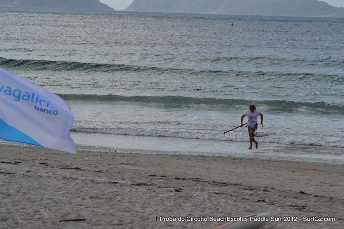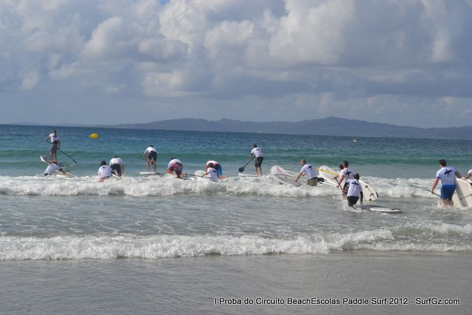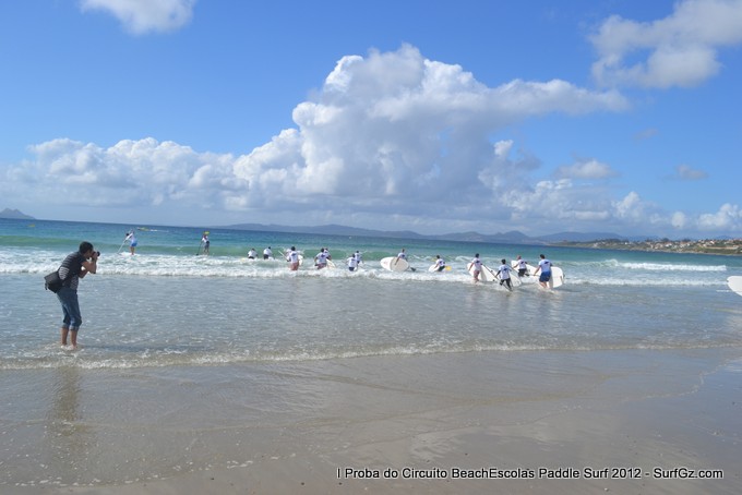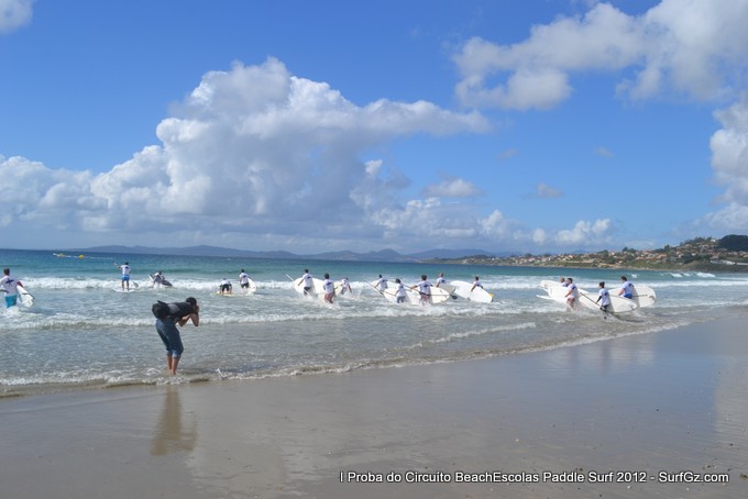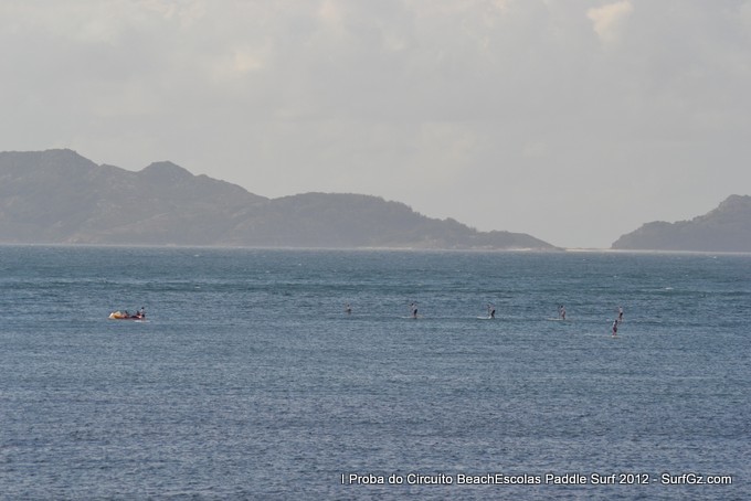 Este sábado pola tarde uns 20 participantes tomaron a saída as seis da tarde pra disputar a primeira proba do Circuíto Beachescolas de Paddle Surf 2012 na praia de Patos na modalidade de 'Race'. Un día de ceo azul con nubes e ventos do sur un pouco fortes que complicaron a proba. O percorrido escollido finalmente foi duns 4.800 metros.