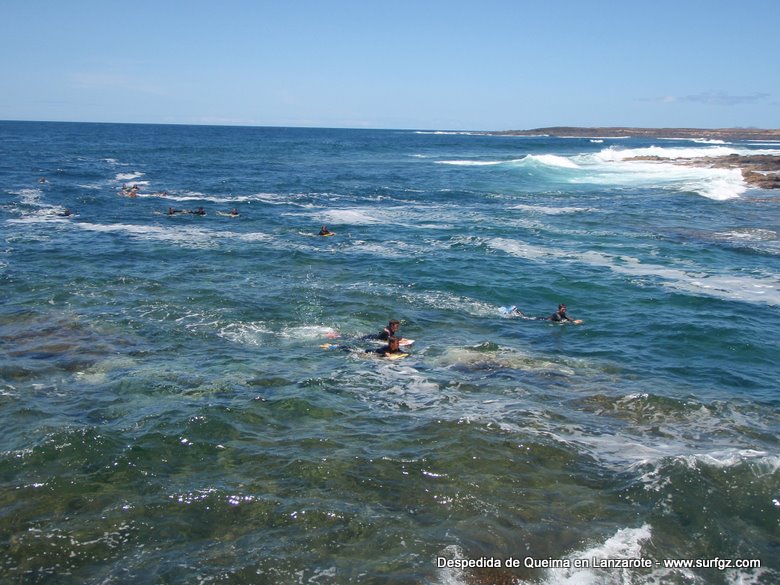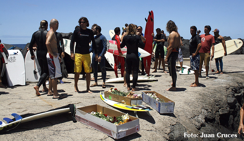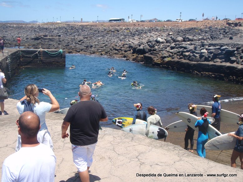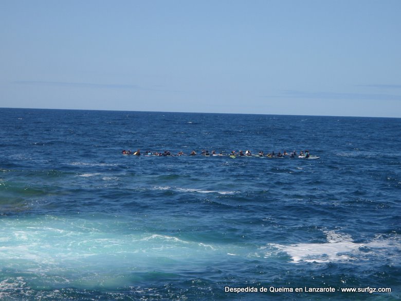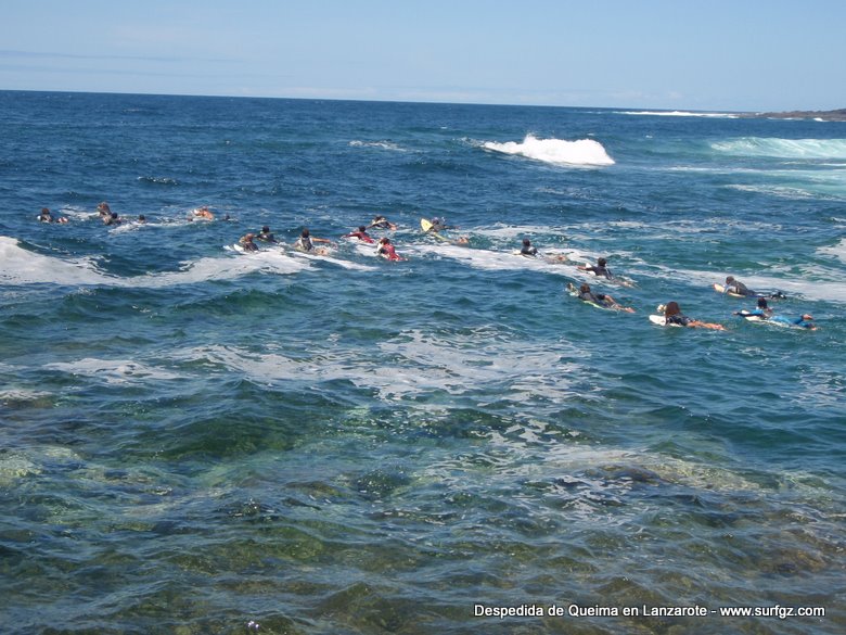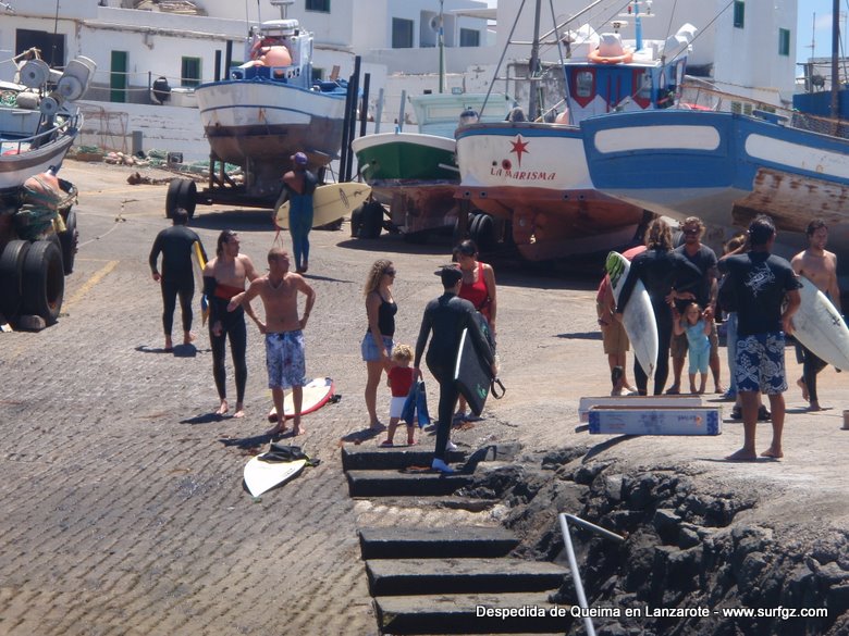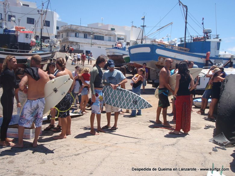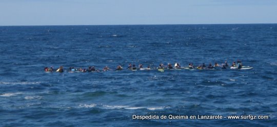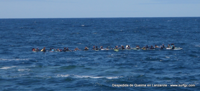 O pasado sábado houbo unha fermosa homenaxe de despedida ao Queima na illa de Lanzarote, durante todo o día os seus amigos lembraron a súa memoria. Ás 14:30 da tarde medio cento de riders entraron na auga dende o peirao da vila da Santa e formaron un círculo de mans unidas no medio do mar. Migueltxu, un grande amigo de Julián, leu a carta de Ana e botaron frores a uns cen metros do Quemao, a súa onda preferida. Logo, algúns amigos foron coller algunhas ondas no Quemao pra compartir este último baño co Queima.