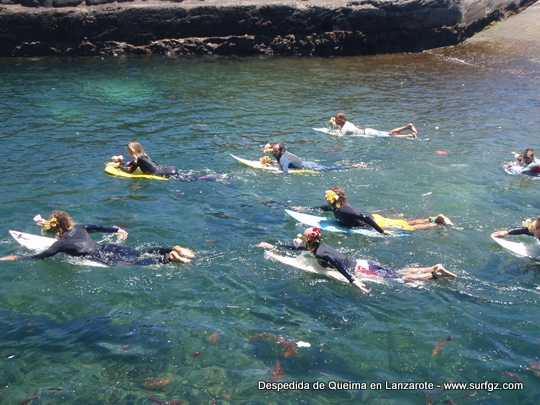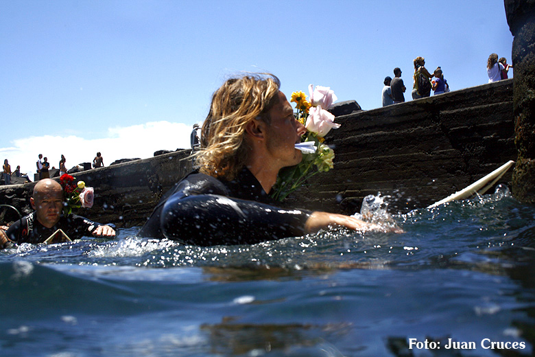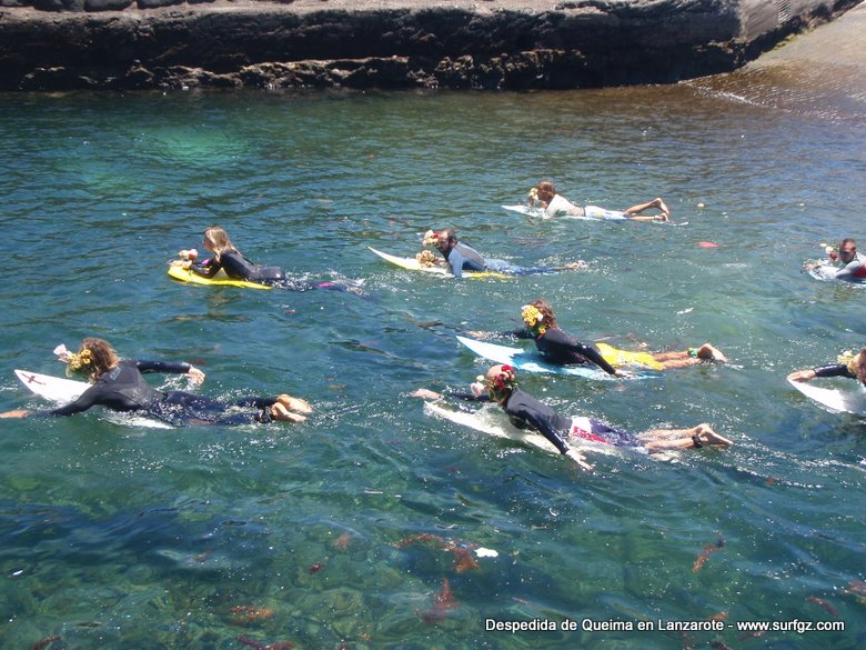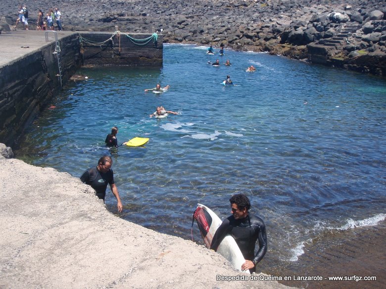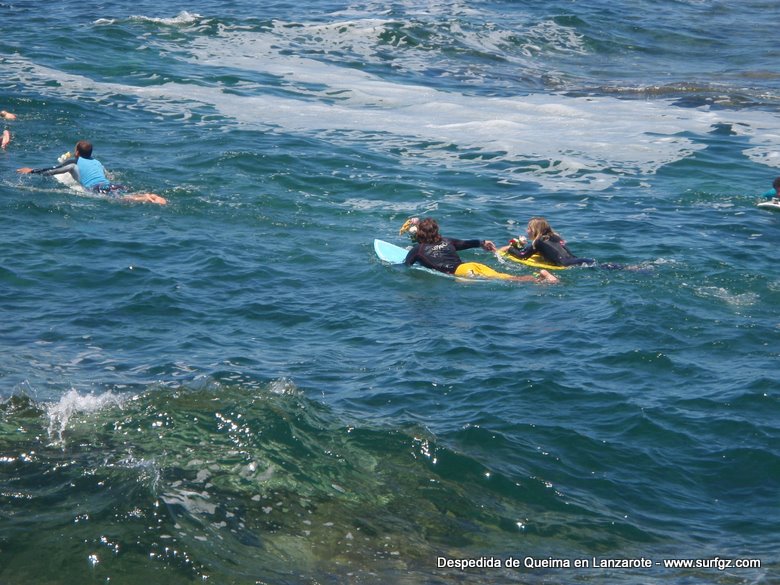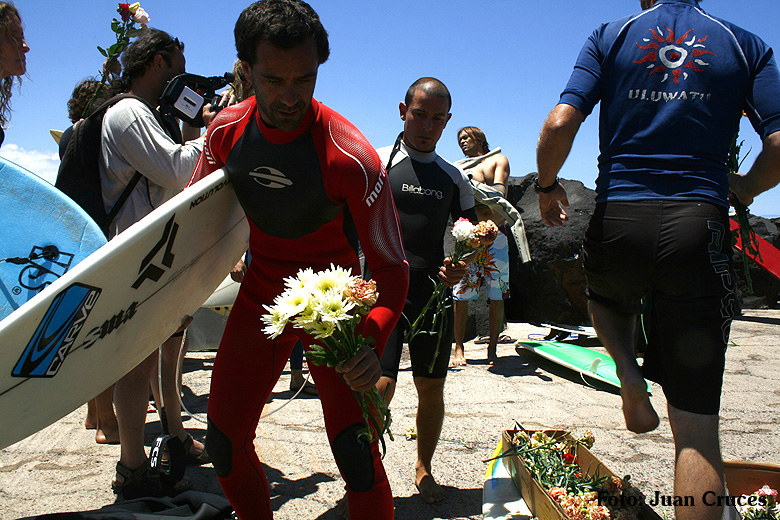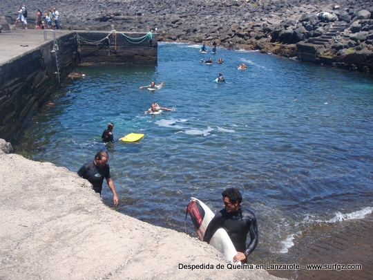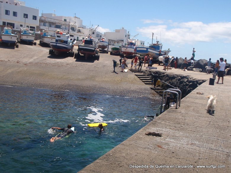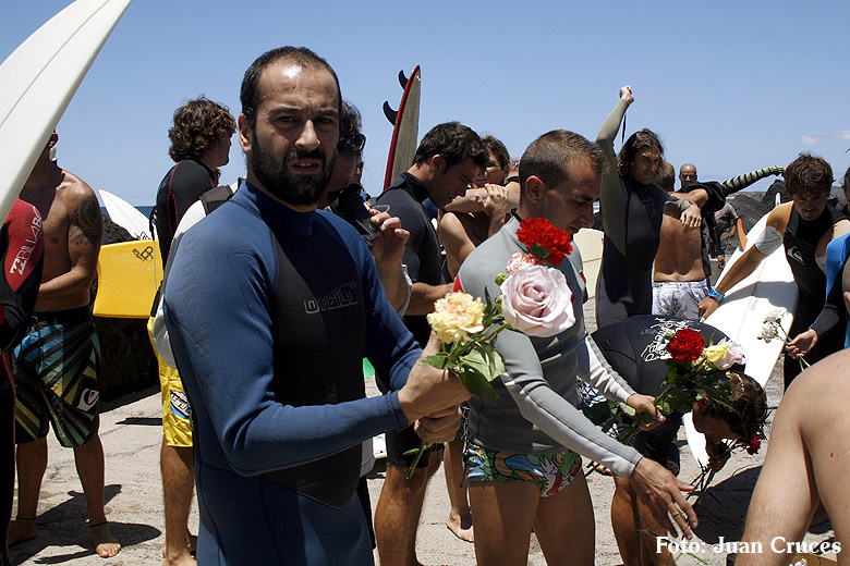 O pasado sábado houbo unha fermosa homenaxe de despedida ao Queima na illa de Lanzarote, durante todo o día os seus amigos lembraron a súa memoria. Ás 14:30 da tarde medio cento de riders entraron na auga dende o peirao da vila da Santa e formaron un círculo de mans unidas no medio do mar. Migueltxu, un grande amigo de Julián, leu a carta de Ana e botaron frores a uns cen metros do Quemao, a súa onda preferida. Logo, algúns amigos foron coller algunhas ondas no Quemao pra compartir este último baño co Queima.