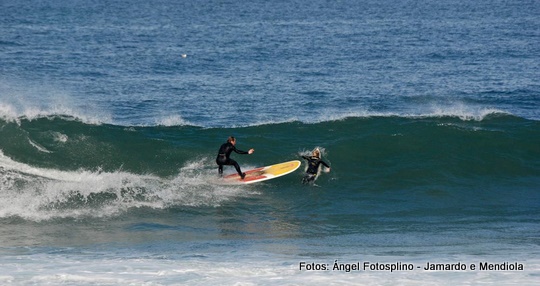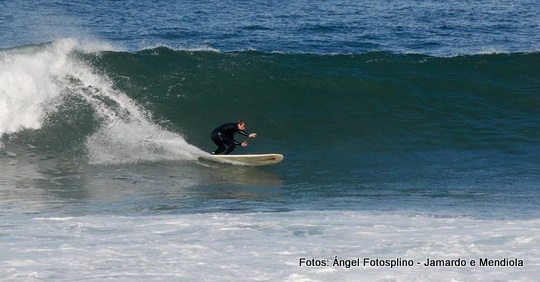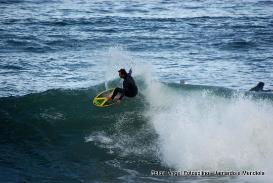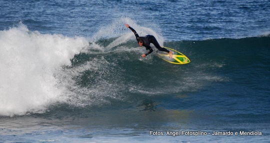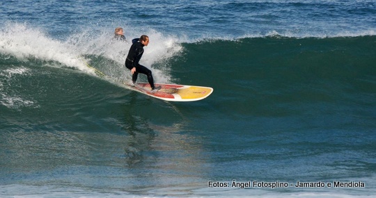 Velaquí van unhas fotos de Jamardo e Mendiola, estes dous surfeiros locais de Patos, levan máis de 20 anos surfando toda a costa galega. Un prefire as dereitas e outro as esquerdas polo que cando entran no pico de Patos non teñen problemas pra coller todas as ondas que pasen preto deles. Todas as fotos son de de Ángel Fotosplino. Embaixo: Jamardo no Pico de Patos.