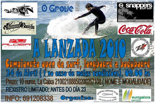 Despois de falar con Sergio Lage xa temos a confirmación de que esta finde vaise celebrar o Campionato Open na praia da Lanzada. Así que aproveitamos pra recomendar a toda a xente que estea interesada no mundo do surf e bodyboard a que pase este domingo 25 de Abril polo evento.