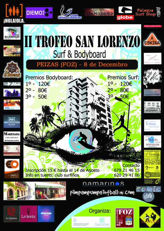 Este mércores 8 de decembro vai ter lugar na praia de Peizás o II Trofeo San Lourenzo en Foz. O evento organizado polo Clube Surfiños vai comezar as 9:00 da mañán e xa están abertas as inscripcións. Intentade avisar antes do martes ao mediodía pra encargar o xantar.