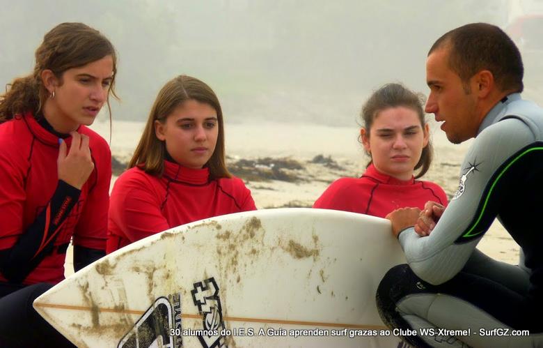 O futuro do surf na nosa costa depende en gran medida da labor que fan os clubes da nosa costa a prol dos deportes de praia e nesta reportaxe enviada por Brais Comesaña do WS-Xtreme Clube tedes un exemplo dela. O pasado luns 17 de Outubro de 2011, 30 alumnos de Bacharelato do instituto I.E.S. A Guía de Vigo saíron das aulas para asistir a unha clase de iniciación ao surf na praia de Patos, durante toda a mañá os asistentes disfrutaron das ondas realizando actividades físico-deportivas e interaccionando co mar e os compañeiros.