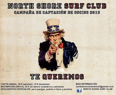 O clube de surf máis popular da Mariña, o North Shore Surf Clube, leva bombeando novas e info no seu novo blog dende o mes pasado e tamén lanzaron unha campaña de captación de socios. Se sodes riders da Mariña e non tedes clube podedes solicitar info e participar nas actividades como limpezas, xuntazas e campionatos que están a organizar.