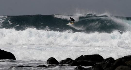 Lamentabelmente, ningún galego tivo a oportunidade de 'cabalgar' as lendarias ondas xigantes que o Pacífico regala de cando en cando e que desta volta superaron os 10 metros. No entanto, hai razóns para a esperanza. Así o considera Kiko Campos, vigués de 34 anos afincado en Lanzarote, que leva literalmente "media vida" facendo surf e coñece ben as capacidades do noso país neste deporte.